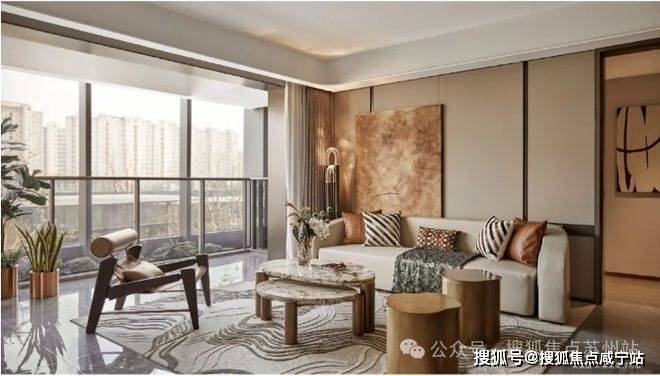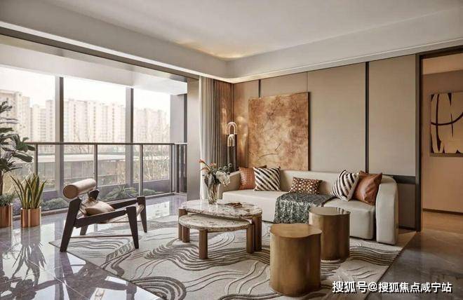 客厅岩板背景墙的应用,典雅气派、肌理丰富,营而着简约不失奢华的家居氛围。