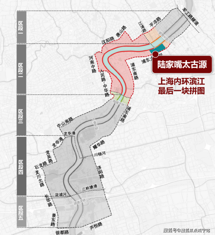 陆家嘴金融城东扩按照“1轴2区3中心5板块”的布局进行,其中,距离更近的北滨江,无疑是陆家嘴东扩传承的“前站”。