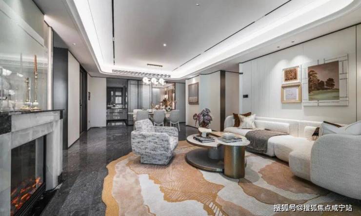 穿过墙面嵌有艺术装置的艺廊式巷道,暖光与石材肌理过滤掉外界喧嚣,再至落客大堂-迎宾大堂-归家大堂,这种 “层层递进” 的设计绝非炫技,而是在三大主题厅堂的空间转换中,完成身份与心境从 “职场精英” 到 “家庭主人” 的温柔过渡,回家路上的每一步都在卸下疲惫 。