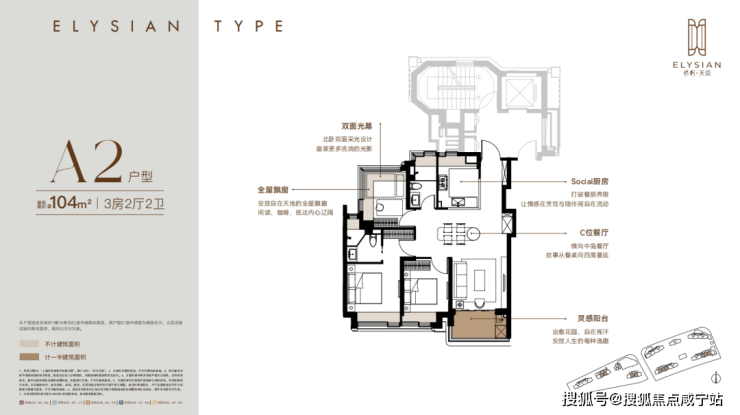 每个户型至少6个飘窗,边套更是约270°转角瞰景。