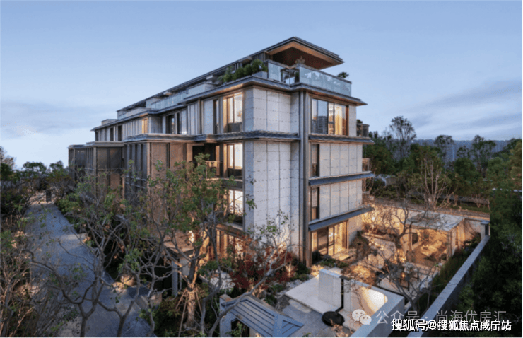 建筑立面取意“瘦金体”笔韵,鎏金铝板与天然石材辉映,搭配全景落地窗,将四时景致与流云光影纳入室内.