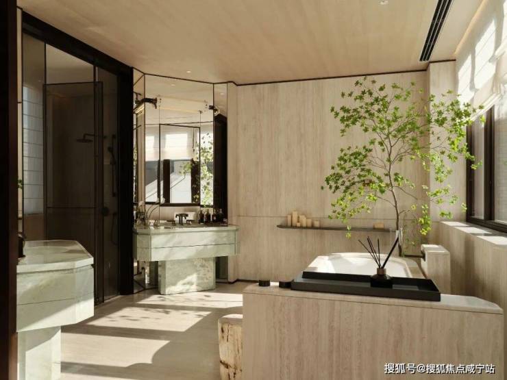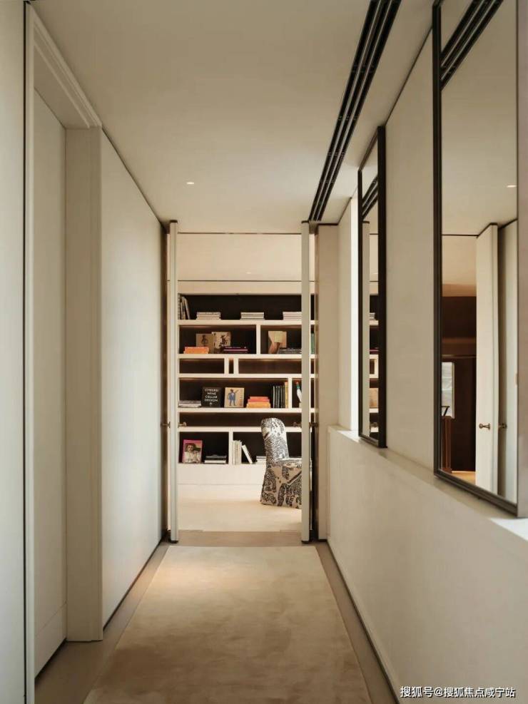 餐厅与水景庭院隔窗相望,羊皮纸拼就而成的屏风成为视觉焦点,内凹式金色圆顶,既赋予空间安定感,又营造出轻盈视效。在这样一座联结历史与当代的精神居所中,追溯东方视角,将上海百年风华凝练于启程转合之间,也昭示着生活的无限可能。