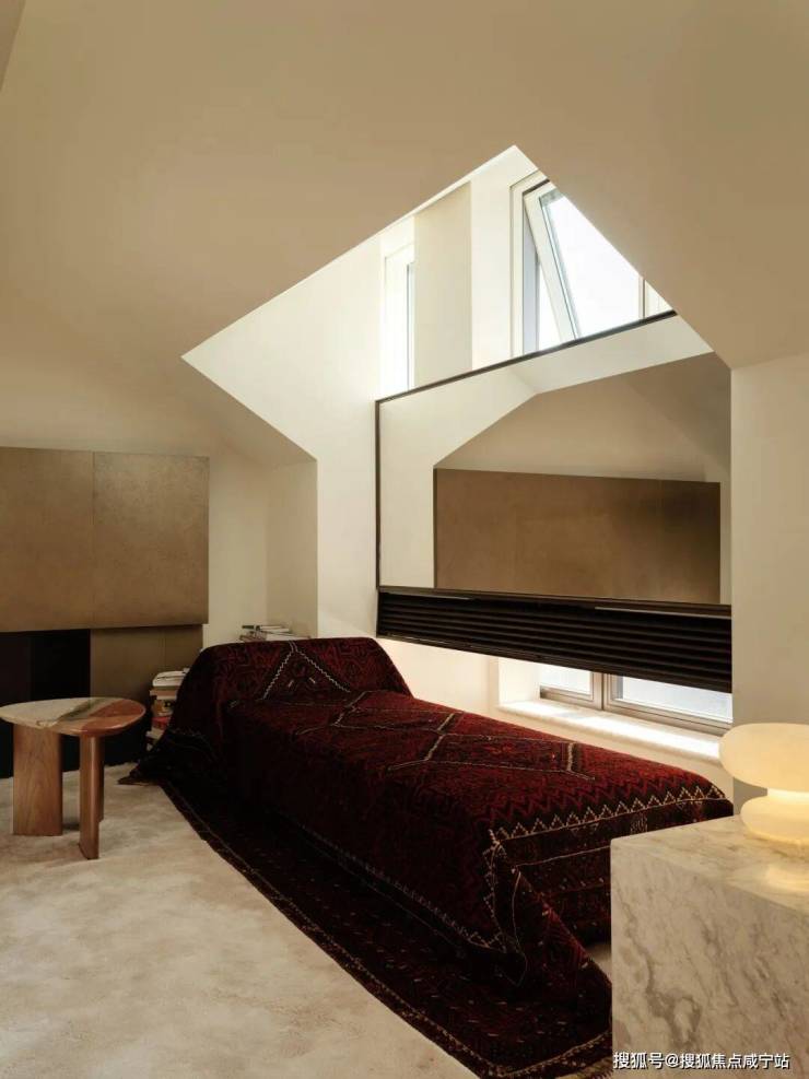 行至二楼是孩子们的天地,休闲与阅读角作为多功能共享空间,既可享用早餐,也是激发灵感的学习场域。米色天然石材与深色实木材质相融,是温暖而富有质感的氛围。花园露台又为室内引入阳光与生命力。