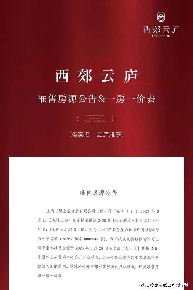 最新消息,长宁中外环新长宁程家桥项目——【西郊云庐】三批次售楼处电话:400-8800-703✨【官方认证】✅✅✅推售37席建面约103-307m²高层房源,装标4000元/m²,过会均价123225元/m²,总价940万起!项目于3月28日开盘!