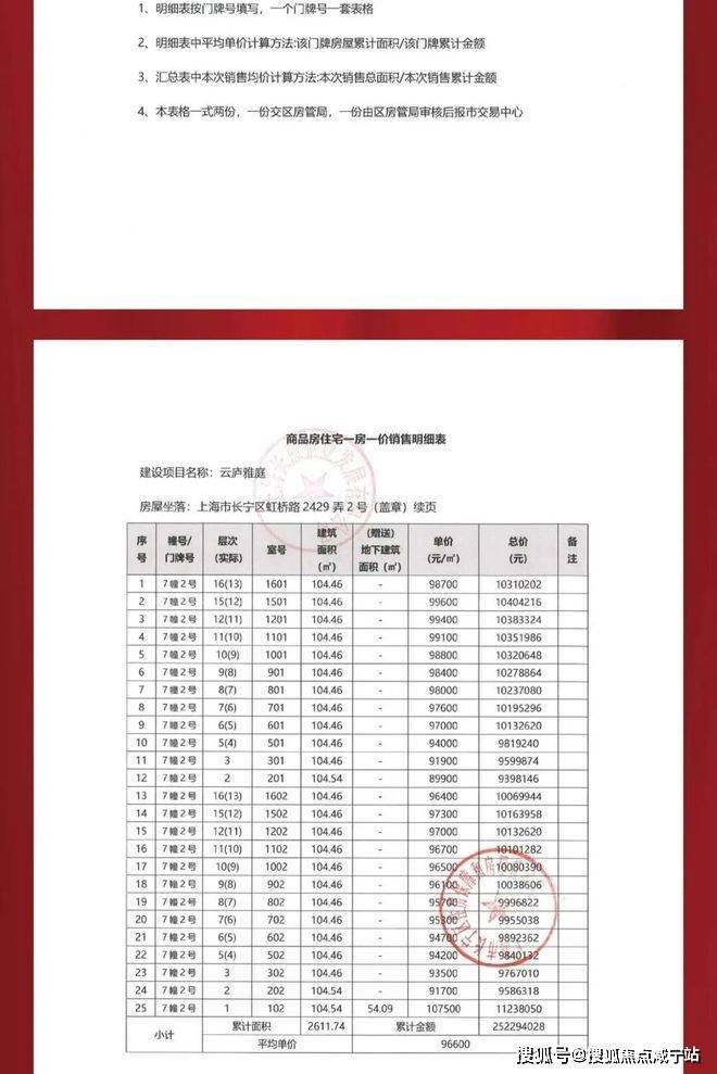 一房一价表: