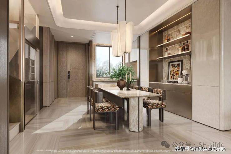 项目联排别墅(均价69999元/㎡)重新定义改善标准。约130-150㎡户型创新采用“立体纵享”思维:一层6.3米横厅+独立餐厅,二层套卧+次卧全明布局,三层主卧配备星空露台。最大亮点在于约5.4米层高地下室,可自由改造为影音室、健身房、茶室等,满足多元生活场景。外立面还原海派法粹艺术,以五进归家礼序(庭院-主巷-次巷-内院)营造仪式感,媲美建业里嘉佩乐酒店质感。
