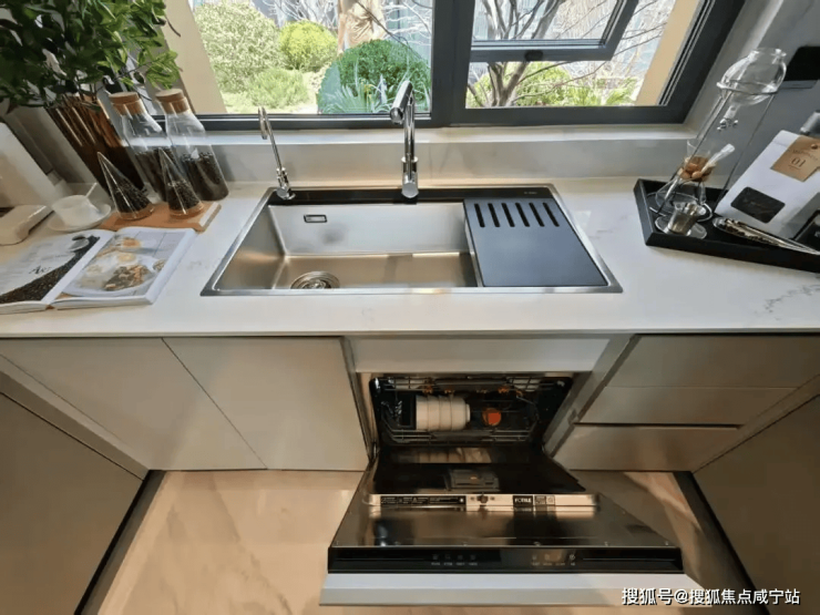 ①二代净洗,洗碗机(16套大容量)与水槽结合,可以节省一组600柜;