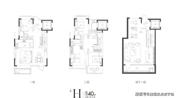 该户型做到了其它相近面积户型远远不可及的尺度感、通透性