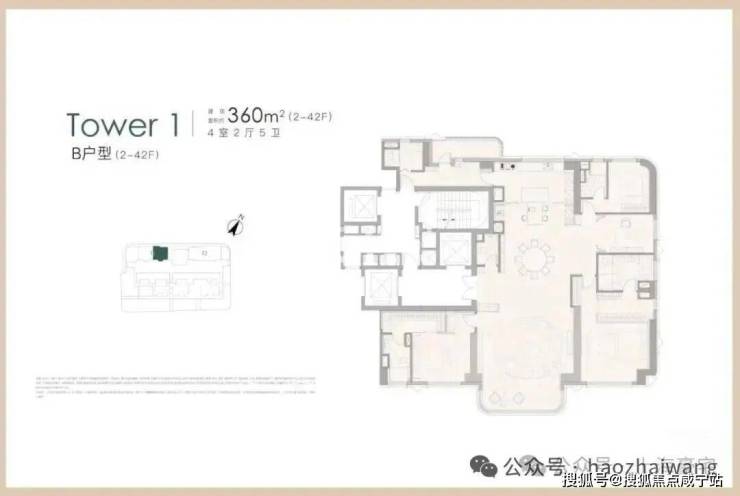 项目首开南地块T3、T4的2幢150米超高层地标大宅,首期主力户型为270㎡/288㎡/338㎡的以及少量608/640㎡的城市封面级天际大平层。