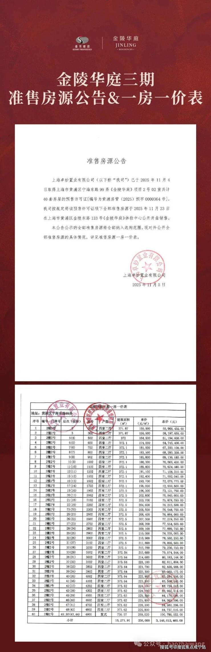 嘉里建设计划将该区发展成以交通为导向的综合发展项目,地块将可直达豫园地铁站,该站为地铁线10号线和14号线的主要换乘站,交通便利。作为地标级超大城市综合街区,该项目总建筑面积约66.3万平方米,项目共有10个地块(部分还未出让),涵盖住宅、办公、商业以及酒店等多元业态,预计将于2027年至2029年间分期竣工。其中住宅面积约12.4万㎡,商业、办公面积约32万㎡,总投资额预计超500亿!预约看房 参观样板房或扫码加好友,微信预约看房报口令:金陵华庭 对接细节金陵华庭售楼处电话13764888805 Harry项目住宅部分有4栋超高层住宅,其余均为3层别墅项目。据网上文件显示地块高层公寓的指导价是20万/㎡,别墅售价可高达30万元/㎡。首批由嘉里建设开发的四幅地块,目前064-01、065-01两幅地块的规划方案已公示,由四幢44层的高层住宅+12幢三层的低密住宅组成,还有部分商办建筑和社区配套用房。嘉里建设:上海金陵东路项目2028年起落成||⭕️:数据来源嘉里建设2023年报。酒店数据我没看错,写的91千平方呎,即9.1万平方呎,约等于8454平方米也不知道咋就这么小,但也可能是酒店服务式公寓。住宅部分计划于2027年起落成。办公、商业零售、酒店部分计划于2028年起落成。设计阵容豪华:KPF、华东院、王欧阳(香港)事务所、the Oval Partnership、如恩设计、天华(上海)等。金陵东路筑路于1860年,曾是二十世纪初上海除外滩之外土地估值最高的地块之一。163岁的金陵东路正在历经史诗式的蝶变。金陵路项目整体开发量约为66.3万平方米,与外滩、南京东路、人民广场、豫园、新天地等多个商圈共同连接,形成未来商业发展的核心区域。