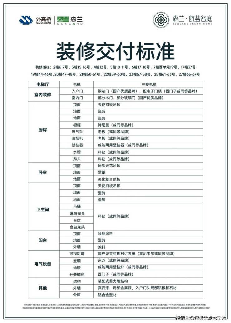 装修标准:项目全屋配备东芝空调、威能两用壁挂炉;卫生间马桶、台盆、龙头皆选用科勒品牌;厨房燃气灶、油烟机选用老板品牌;开关插座皆来自西门子。