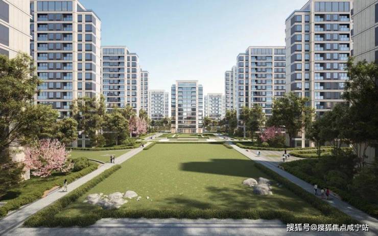 社区整体规划为南低北高,北侧沿街布置商业,形成国际住区合理化布局,满足居民生活的便利性和品质感;中轴对称的景观大花园布局,融合简约现代的立面风格,兼具实用性与美观性,让森系生活的景观价值最大化。