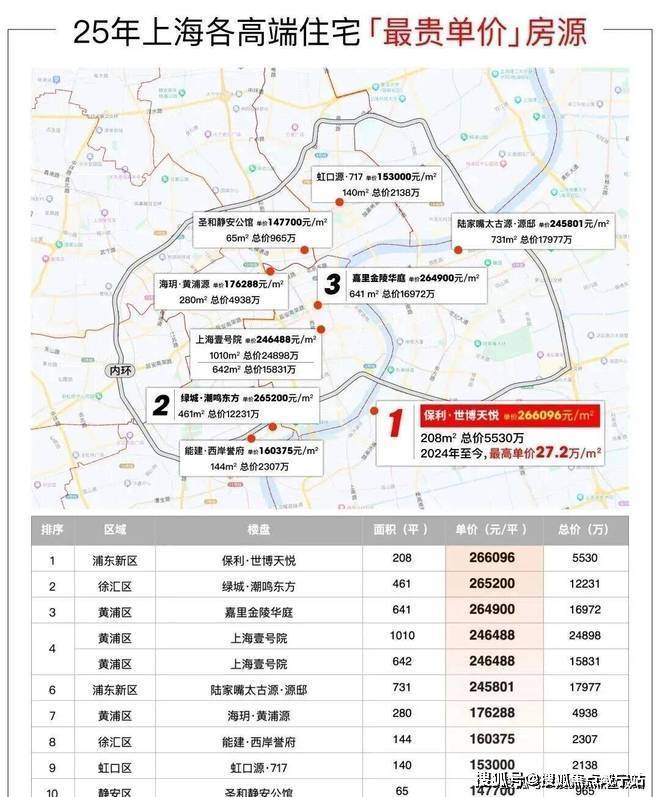 2025上海豪宅单价超20万/m²的成交量排行中,保利世博天悦甚至力压新天地、外滩、陆家嘴、苏河湾、徐汇滨江等一众热门板块新盘,问鼎上海豪宅之巅!