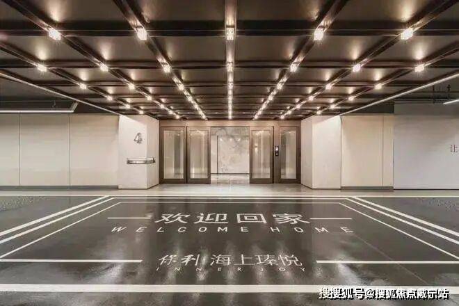 保利海上瑧悦售楼处电话☎:400-880-0703✔✔地下归家大堂用材选取意大利进口岩板,色泽温润,和谐统一。人脸识别自动移门便捷实用,金属夹丝玻璃美观大气,开阖家的尊重与安心。