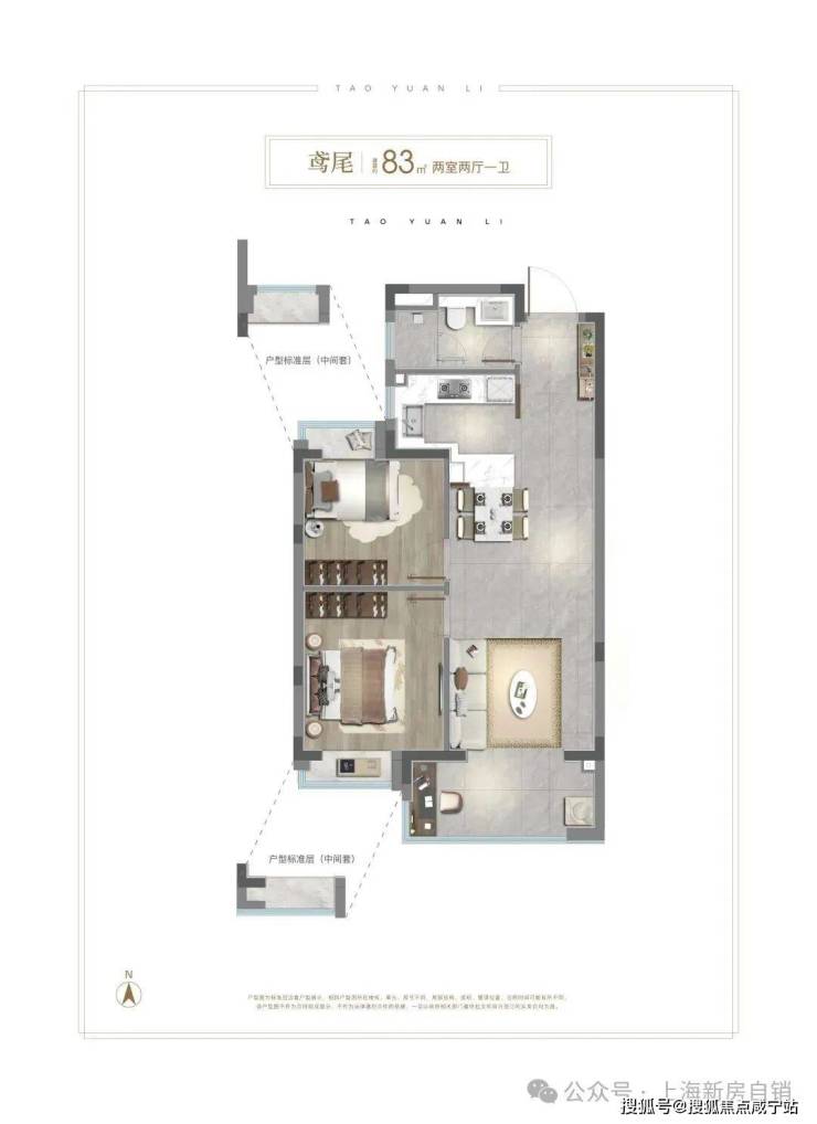 建面约83㎡2房