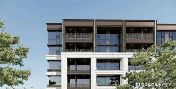 洋房立面以大面积干挂石材结合金属饰面为主基调,营造出现代典雅的整体风格。
