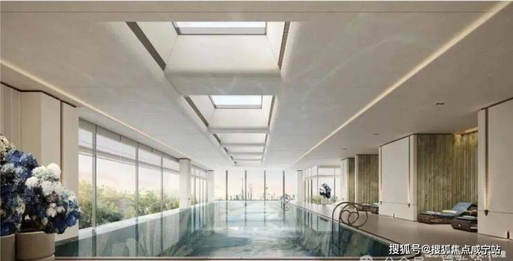 你可以看到通风、采光、景观视野更极致的地面会所和泳池,身在其中,三件套与北外滩的建筑群、社区内部的景观与北外滩中央绿地,都可以尽收眼底。