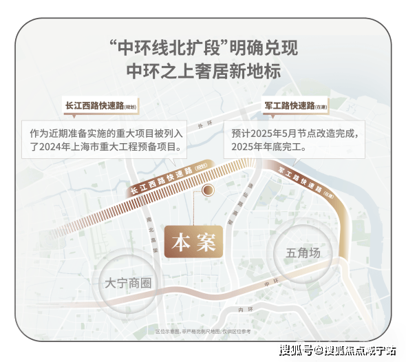 中环线北扩段明确兑现,军工路快速路25年开工,长江西路快速路列入上海市重大工程清单预备项目,快速链通城心,随着中环线北扩段的政策明确,淞南将正式进入中环时间。未来经逸仙高架,进入南北高架、内环高架、中环高架,可快速链通南北上海;多维立体路网全面升级,未来区域价值再攀新高。招商序售楼处电话📞400-8800-703如有问题欢迎来电咨询,来电即可享受买房优惠!