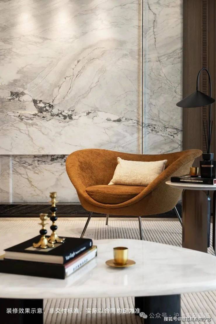 客厅背景墙的“烟雨江南”天然大理石,不同于传统平面背景墙,通过弧度及立体的造型处理,并镶嵌不锈钢材质,对于金茂而言,比奢石昂贵的,是让奢石真正与空间气场融为一体!