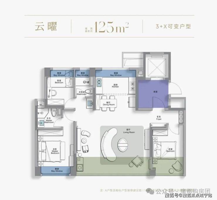 建面约125㎡云曜:奢尺四开间,全面迭新生活想象力