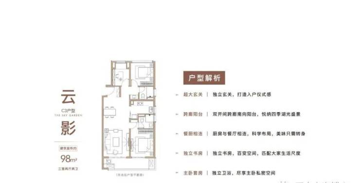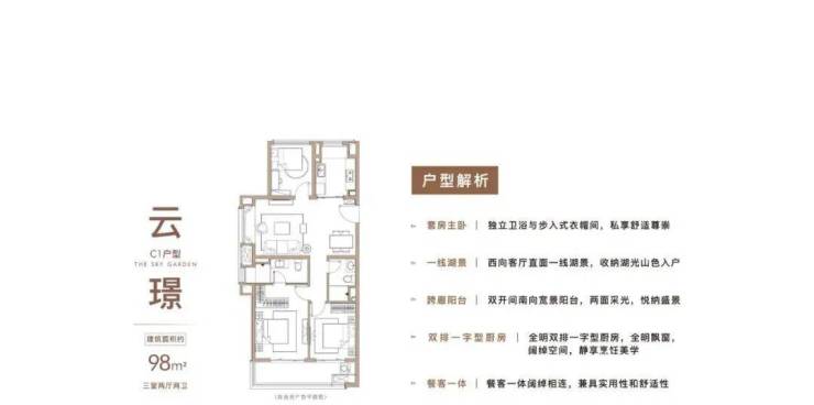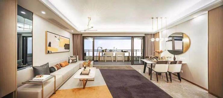客餐厅一体化+6.2米观景阳台,既增强家庭互动,又最大化湖景视野;