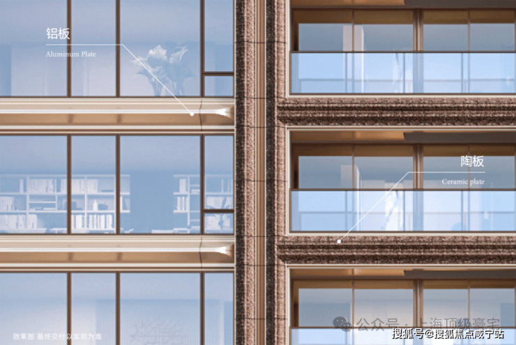 金茂璞元在建筑立面上实现了上海前所未有的全向艺术化。建筑四面采用同等考究的材质和语言,主体采用铝板+玻璃+陶三种材质精工雕琢,这种东西南北全立面住宅在上海极其罕见。