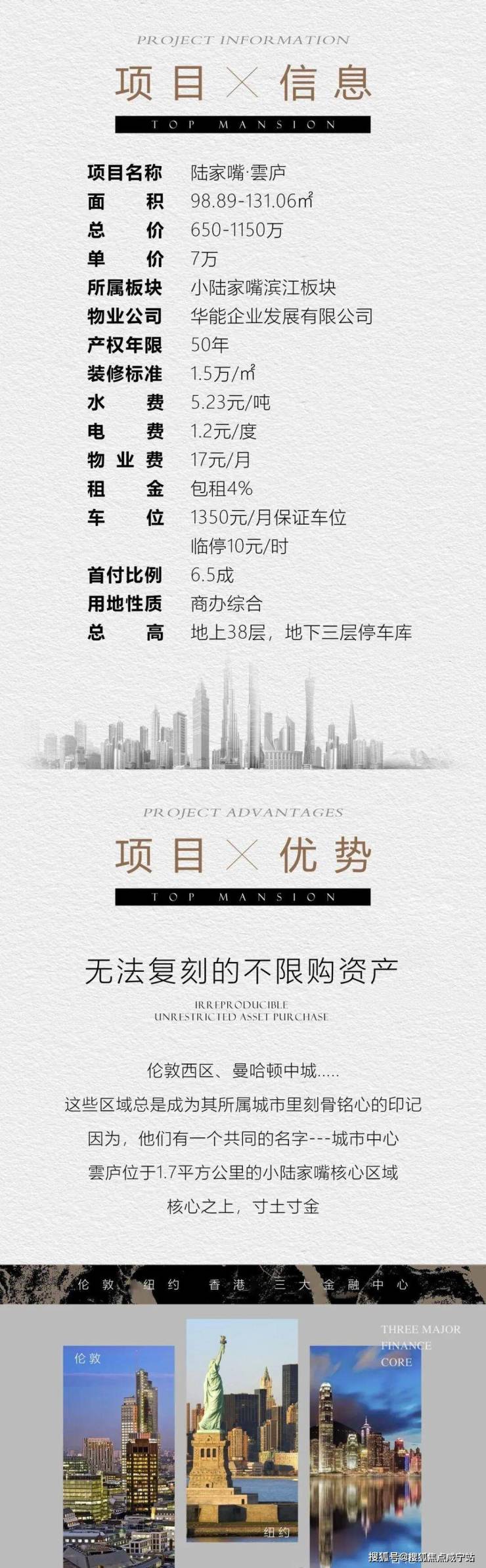 陆家嘴上海中心旁「陆家嘴·雲庐」不限购行政公馆,在售面积约98-131㎡1-2房,现有少量房源在售;总价7字头起拥内环内品质不动产,投资,自住皆宜。