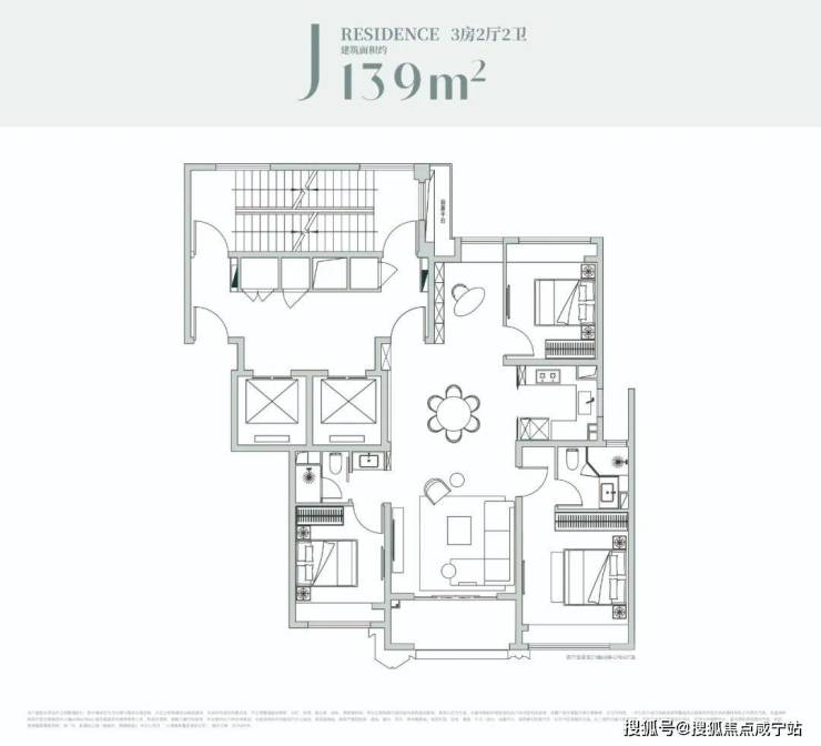 建面约139㎡3房,更是129㎡户型的升级款,保留所有优势的同时,更进行了功能的扩充!