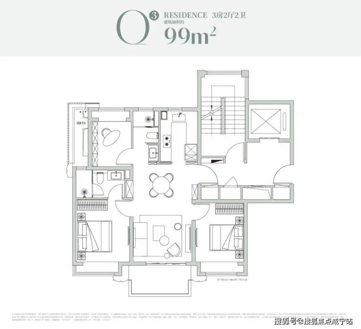 建面约99㎡,全线升级的爆款户型。