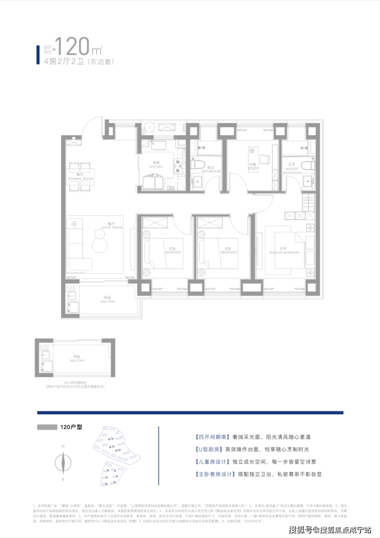 在户型设计上,优享建面约120㎡四房,不仅尺度阔绰,功能空间齐全,也满足了成长家庭的选择。