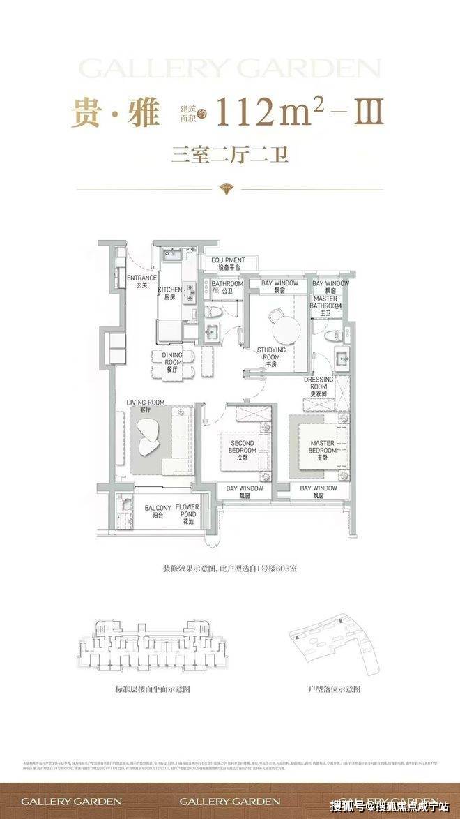 项目舍弃了传统逼仄的百平三房,将最小面积提升到了建面约112㎡,而这12个平方的提升,让整体户型的空间尺度感达到了新的高度。