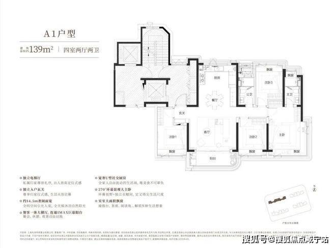 建面约139㎡四房户型,更是形成"阳光平权"的居住体验。