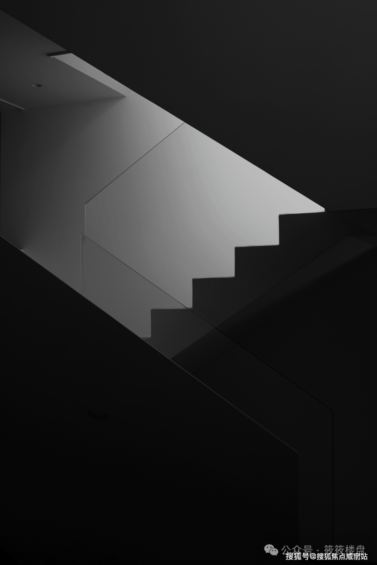 楼梯区完全被几何占据,自然光恰到好处的平衡,进一步呼应着空间的心境,衔接了生活和居所。