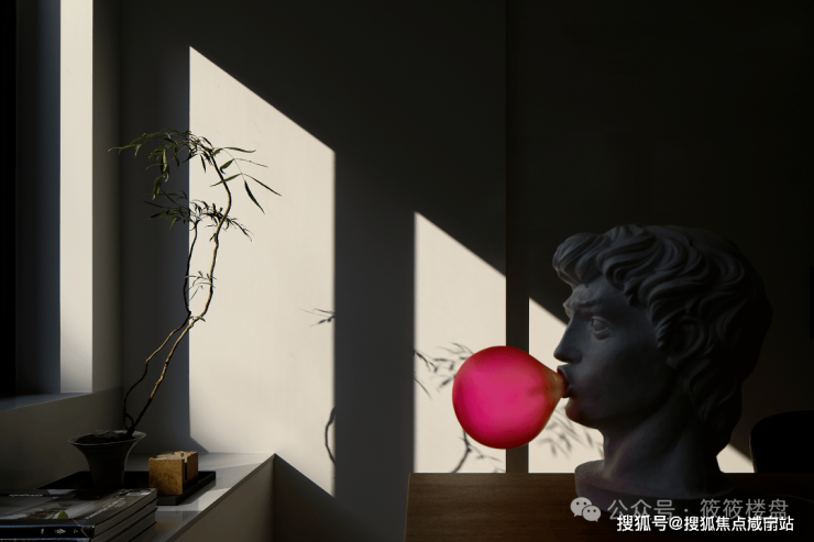 器物、枝叶缔造了虚实相生的意境,在墙面上留下了唯美的“倩影”,进而丰富了空间内在。