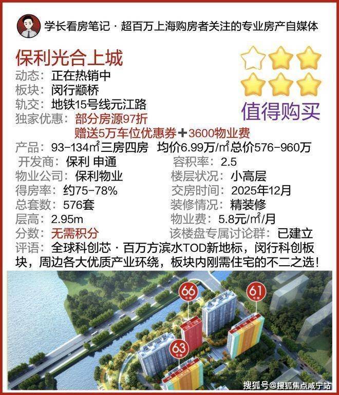 上海唯一打骨折新房「保利光合跃城-保利光合上城」楼盘震惊房价-95折+赠车位+赠物业费!保利光合TOD!约93-143m²3-4房热销中,总价563万起