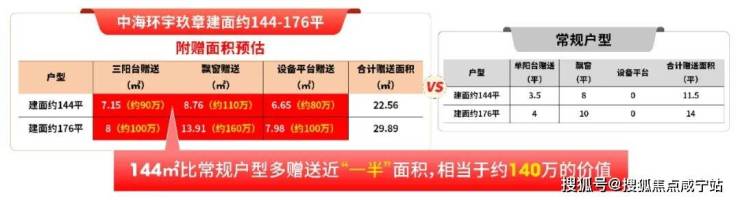 而该144平户型,不仅配备三阳台,飘窗数量更充足,还独树一帜地规划了户内设备平台,多重赠送叠加后,总赠送面积高达约22.5平,比常规户型整整多送一半!