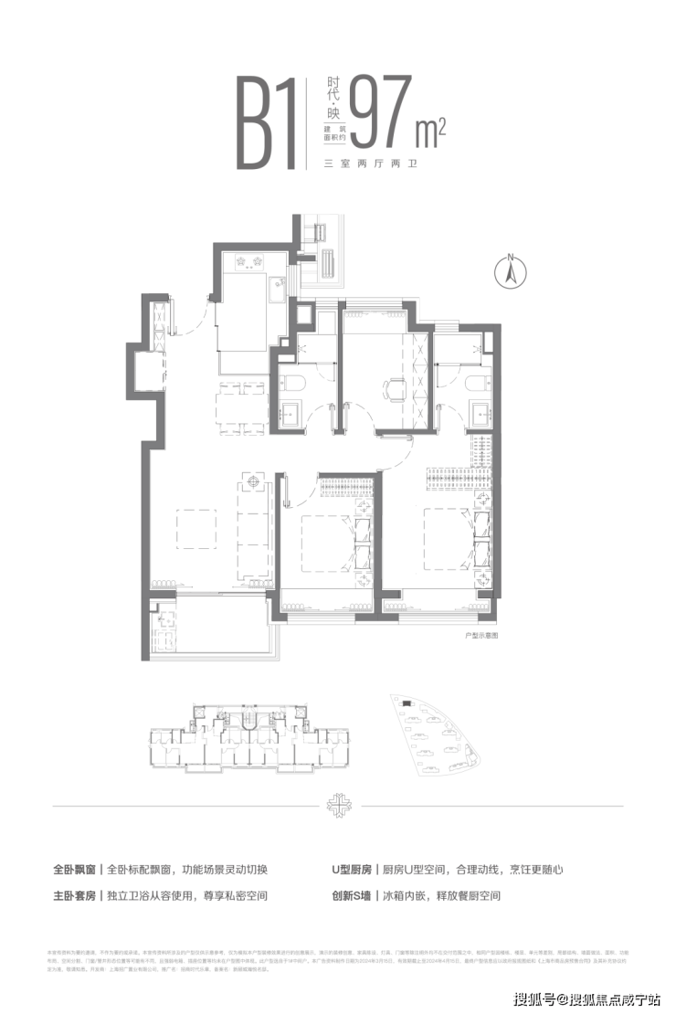 89㎡三房:U型厨房+干湿分离卫生间,卧室预留定制柜体空间,飘窗全赠送