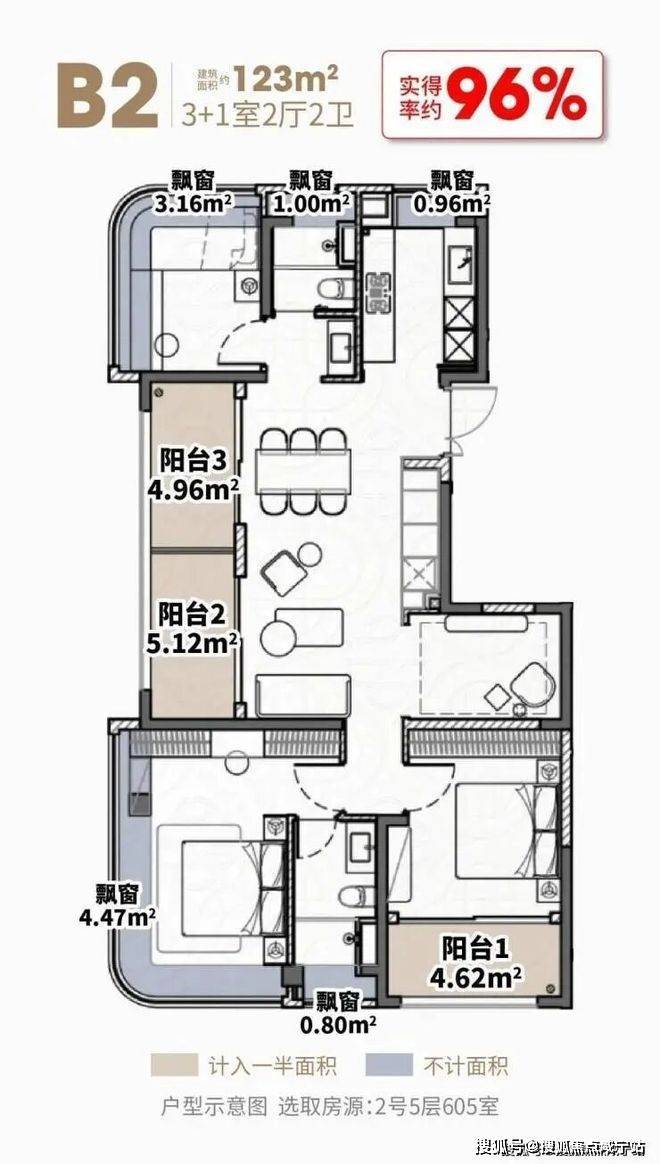 当市场还在为75%得房率挣扎,以全系三阳台+飘窗矩阵掀起降维打击——最高约96%实得率,让建面约108㎡碾压传统120㎡,约123㎡叫板140㎡!