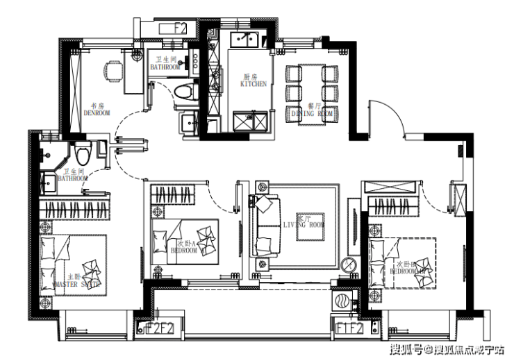 85-95㎡三房:双卫设计,L型厨房联动餐厅,提升家庭互动效率(参考同类型户型设计)。