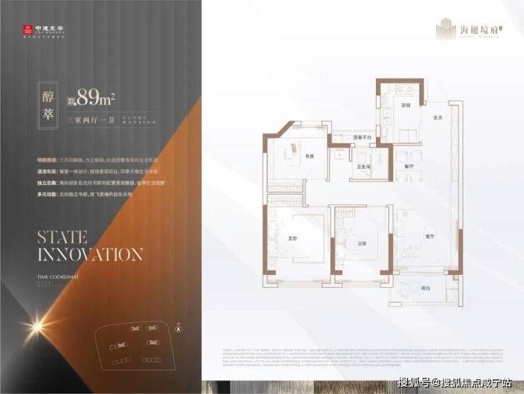 ▶ 89㎡三房一卫(主力收官户型):南北通透方正格局4,精装交付;