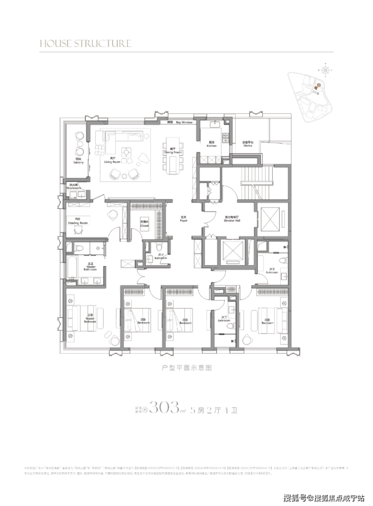 4#西单元(小高层),面积303㎡,总价约4200-5100万。