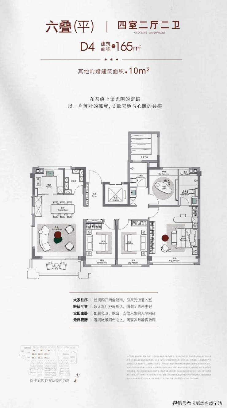 SLDK一体化,餐厅两侧均预留餐边柜位置,全卧及厨房均附赠飘窗,主卫配置淋浴及浴缸;
