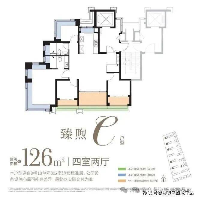 首开户型:98㎡三室两厅、108㎡三室两厅、126㎡四室两厅,共计118套