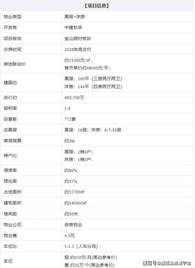 今年3月15日,第一批次首轮土拍中,中建八局以总价265743万元,拿下了宝山区顾村镇潘泾社区BSP0-0301单元07B-02地块,容积率1.8,溢价率5.56%,楼板价27974元/㎡,房地联动价51000元/平。