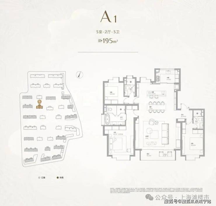 建面约195㎡户型:稀缺大平层返场,约7米宽厅+3套房设计+中西双厨,3年等1席!