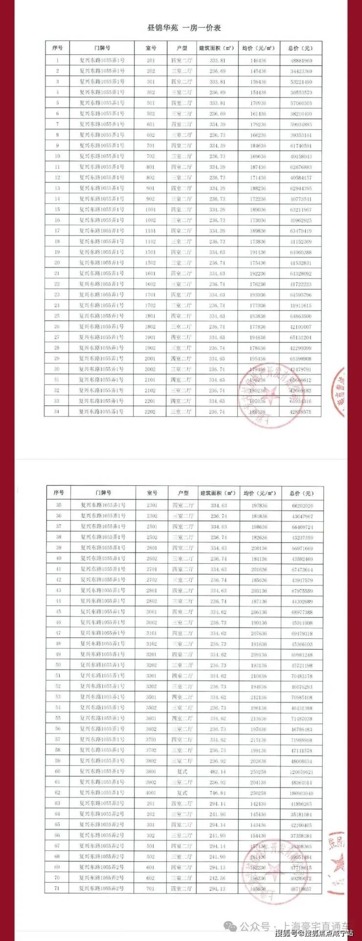 四批次一房一价表