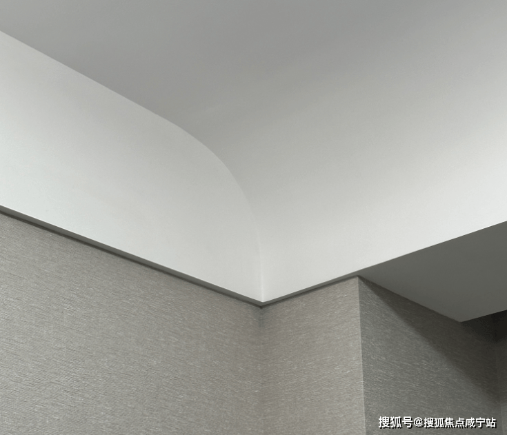 再看吊顶细节,每个次卧都有这种弧形收边,在视觉效果上,更为柔和。