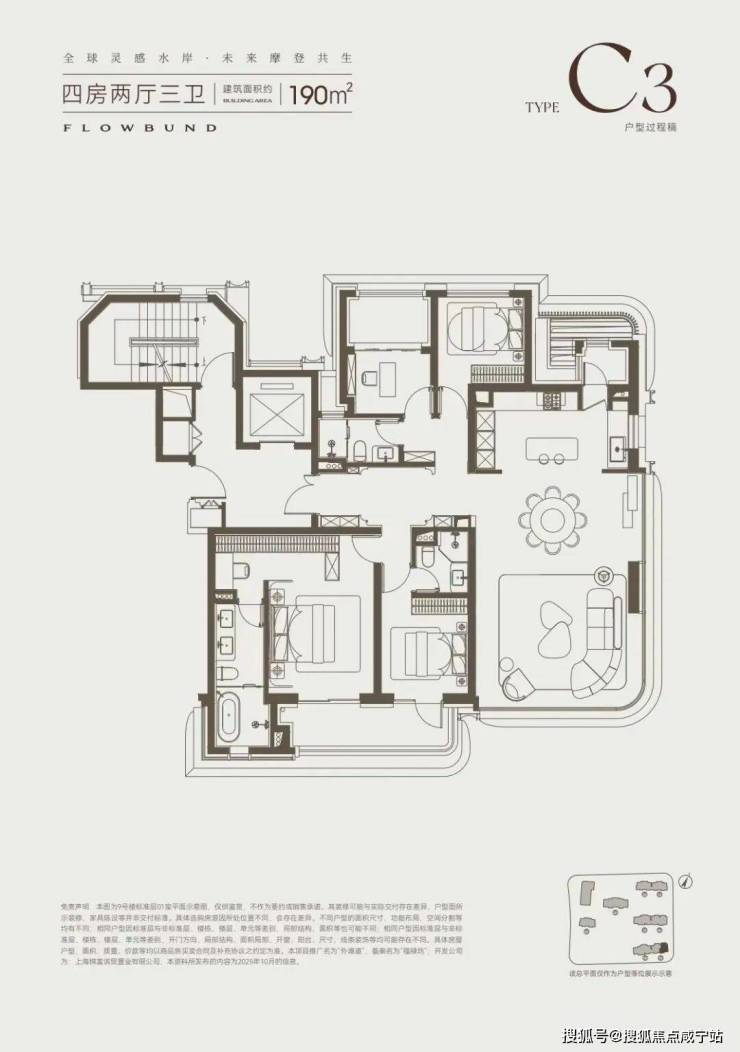 190㎡户型分布在3幢的东西边套,两个边套的户型也是不同的。