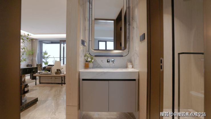 卫浴选用杜拉维特&汉斯格雅等全系高端品牌,每一个细节都彰显着品质与奢华。镜面柜不仅美观实用,还提供了充足的收纳空间,让洗漱用品摆放得井井有条;