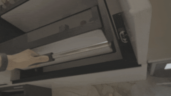 自动升降的隐藏式油烟机,挥一挥手就能开启,低吸设计牢牢锁住油烟不扩散;烟灶联动、制冷空调、蒸烤同烹等功能,适配多样烹饪场景。